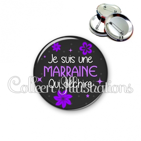 Image imprimée en haute résolution sur papier de qualité, protégée d'un film plastique, et sertie sur une coque et épingle métallique.