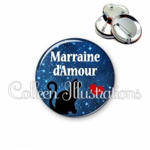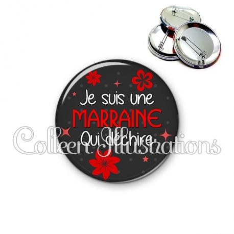 Image imprimée en haute résolution sur papier de qualité, protégée d'un film plastique, et sertie sur une coque et épingle métallique.