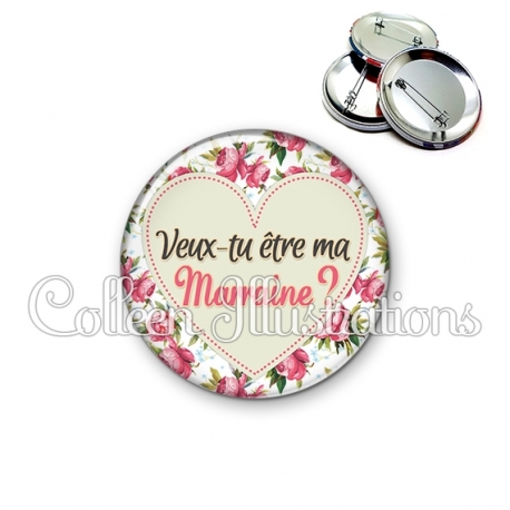 Image imprimée en haute résolution sur papier de qualité, protégée d'un film plastique, et sertie sur une coque et épingle métallique.