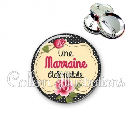 Image imprimée en haute résolution sur papier de qualité, protégée d'un film plastique, et sertie sur une coque et épingle métallique.