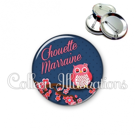 Image imprimée en haute résolution sur papier de qualité, protégée d'un film plastique, et sertie sur une coque et épingle métallique.