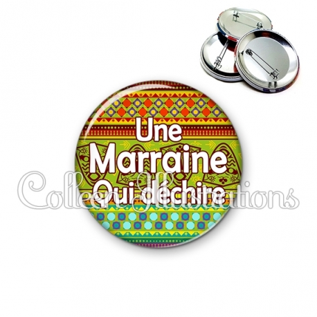 Image imprimée en haute résolution sur papier de qualité, protégée d'un film plastique, et sertie sur une coque et épingle métallique.