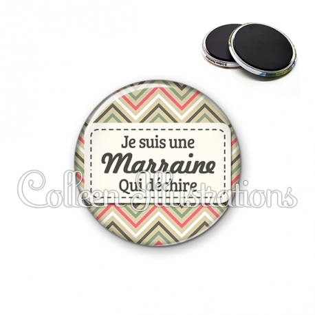 Image imprimée en haute résolution sur papier de qualité, protégée d'un film plastique, et sertie sur une coque métallique avec dos aimanté.