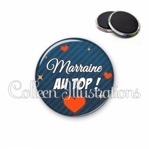Image imprimée en haute résolution sur papier de qualité, protégée d'un film plastique, et sertie sur une coque métallique avec dos aimanté.