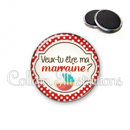 Image imprimée en haute résolution sur papier de qualité, protégée d'un film plastique, et sertie sur une coque métallique avec dos aimanté.