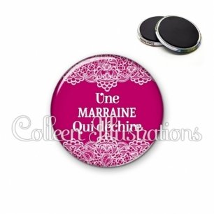 Image imprimée en haute résolution sur papier de qualité, protégée d'un film plastique, et sertie sur une coque métallique avec dos aimanté.
