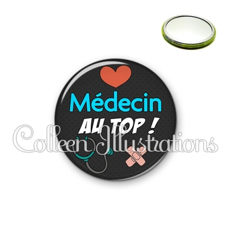 Miroir simple avec dos métallique décoré d'une image fantaisie et texte.