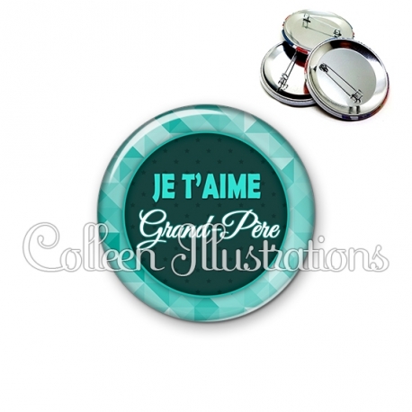 Image imprimée en haute résolution sur papier de qualité, protégée d'un film plastique, et sertie sur une coque et épingle métallique.