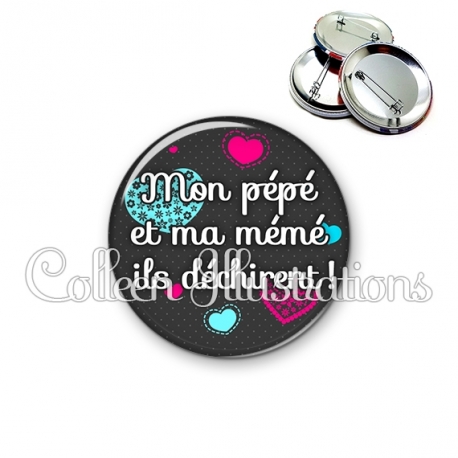 Image imprimée en haute résolution sur papier de qualité, protégée d'un film plastique, et sertie sur une coque et épingle métallique.