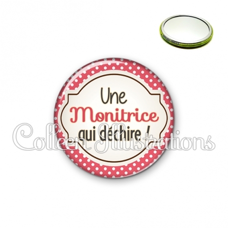 Miroir simple avec dos métallique décoré d'une image fantaisie et texte.