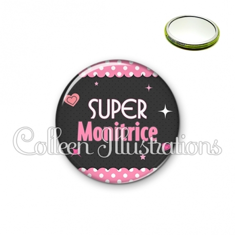 Miroir simple avec dos métallique décoré d'une image fantaisie et texte.