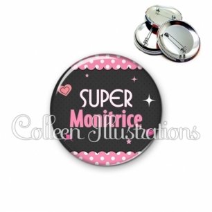 Image imprimée en haute résolution sur papier de qualité, protégée d'un film plastique, et sertie sur une coque et épingle métallique.