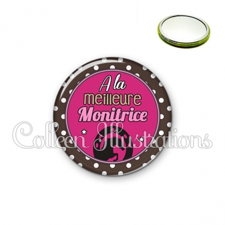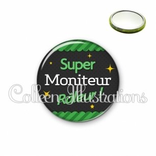 Miroir simple avec dos métallique décoré d'une image fantaisie et texte.
