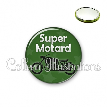 Image imprimée en haute résolution sur papier de qualité, protégée d'un film plastique, et sertie sur une coque métallique avec dos miroir. Une seule face, non grossissante.