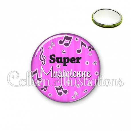 Miroir simple avec dos métallique décoré d'une image fantaisie et texte.