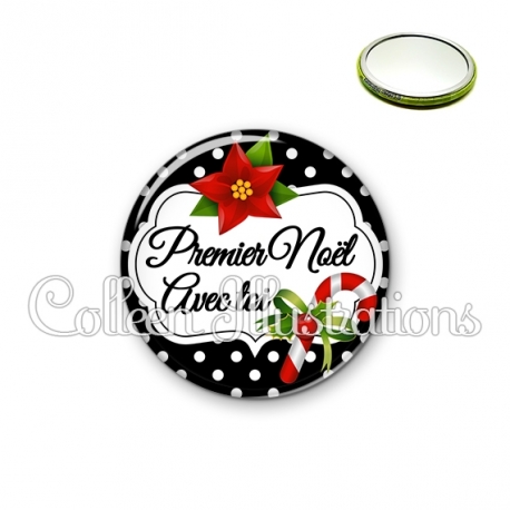 Image imprimée en haute résolution sur papier de qualité, protégée d'un film plastique, et sertie sur une coque métallique avec dos miroir. Une seule face, non grossissante.