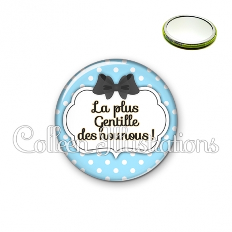 Miroir simple avec dos métallique décoré d'une image fantaisie et texte.