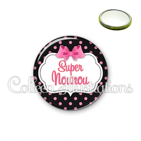 Miroir simple avec dos métallique décoré d'une image fantaisie et texte.