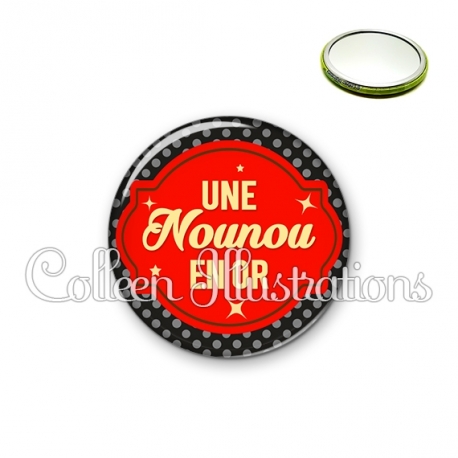 Miroir simple avec dos métallique décoré d'une image fantaisie et texte.
