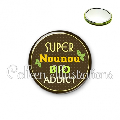Miroir simple avec dos métallique décoré d'une image fantaisie et texte.