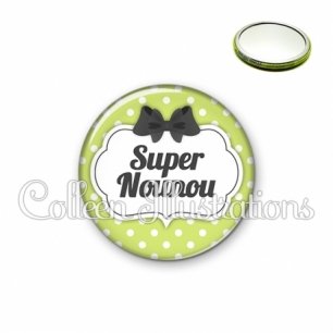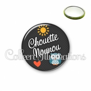 Miroir simple avec dos métallique décoré d'une image fantaisie et texte.