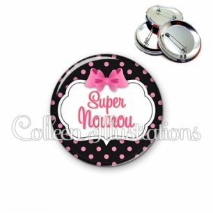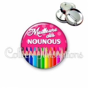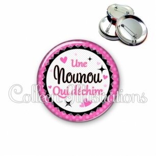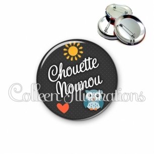 Image imprimée en haute résolution sur papier de qualité, protégée d'un film plastique, et sertie sur une coque et épingle métallique.