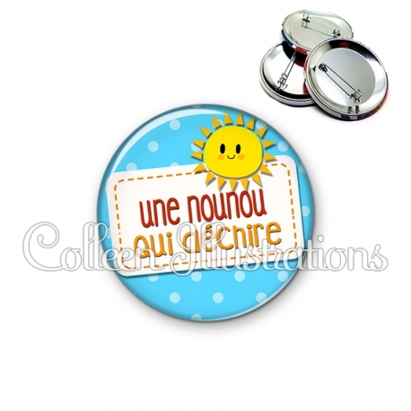 Image imprimée en haute résolution sur papier de qualité, protégée d'un film plastique, et sertie sur une coque et épingle métallique.