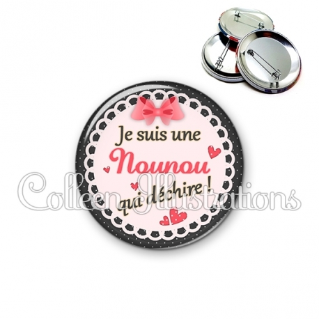 Image imprimée en haute résolution sur papier de qualité, protégée d'un film plastique, et sertie sur une coque et épingle métallique.