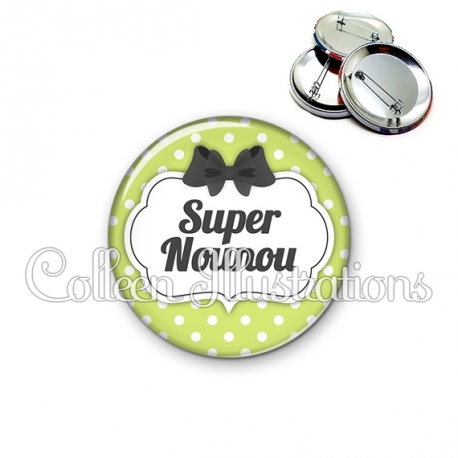 Image imprimée en haute résolution sur papier de qualité, protégée d'un film plastique, et sertie sur une coque et épingle métallique.