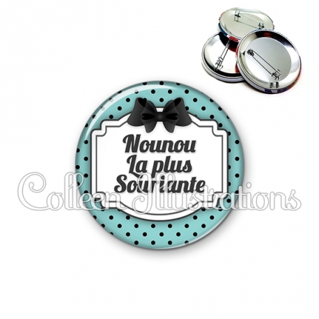 Image imprimée en haute résolution sur papier de qualité, protégée d'un film plastique, et sertie sur une coque et épingle métallique.