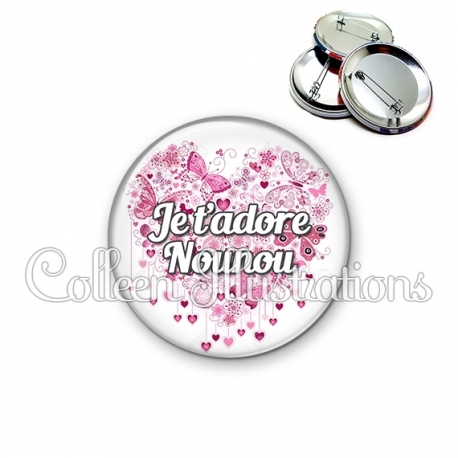 Image imprimée en haute résolution sur papier de qualité, protégée d'un film plastique, et sertie sur une coque et épingle métallique.
