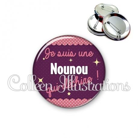 Image imprimée en haute résolution sur papier de qualité, protégée d'un film plastique, et sertie sur une coque et épingle métallique.