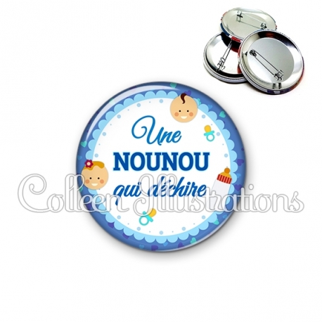 Image imprimée en haute résolution sur papier de qualité, protégée d'un film plastique, et sertie sur une coque et épingle métallique.
