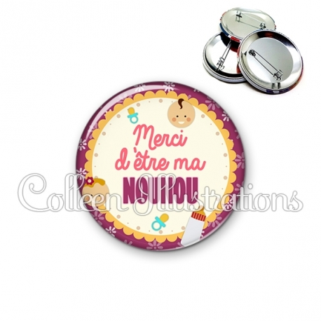 Image imprimée en haute résolution sur papier de qualité, protégée d'un film plastique, et sertie sur une coque et épingle métallique.