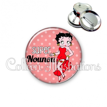 Image imprimée en haute résolution sur papier de qualité, protégée d'un film plastique, et sertie sur une coque et épingle métallique.