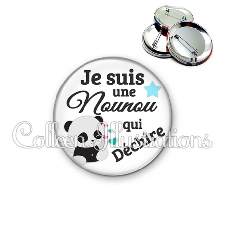 Image imprimée en haute résolution sur papier de qualité, protégée d'un film plastique, et sertie sur une coque et épingle métallique.