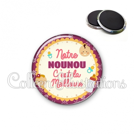 Image imprimée en haute résolution sur papier de qualité, protégée d'un film plastique, et sertie sur une coque métallique avec dos aimanté.