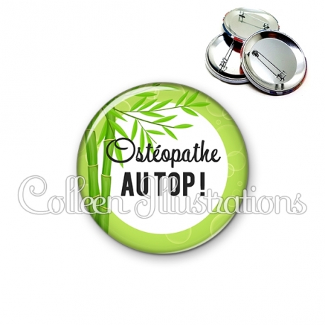 Image imprimée en haute résolution sur papier de qualité, protégée d'un film plastique, et sertie sur une coque et épingle métallique.