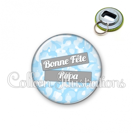 Image imprimée en haute résolution sur papier de qualité, protégée d'un film plastique, et sertie sur une coque métallique avec dos décapsuleur.