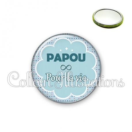 Miroir simple avec dos métallique décoré d'une image fantaisie et texte.