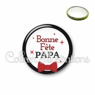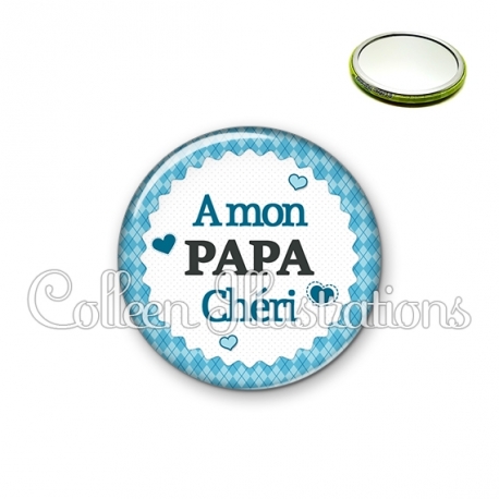 Image imprimée en haute résolution sur papier de qualité, protégée d'un film plastique, et sertie sur une coque métallique avec dos miroir. Une seule face, non grossissante.