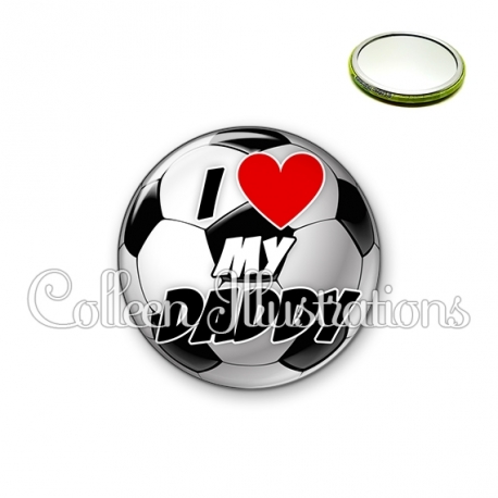 Image imprimée en haute résolution sur papier de qualité, protégée d'un film plastique, et sertie sur une coque métallique avec dos miroir. Une seule face, non grossissante.