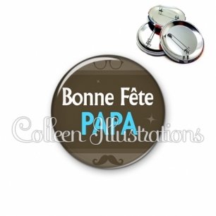 Image imprimée en haute résolution sur papier de qualité, protégée d'un film plastique, et sertie sur une coque et épingle métallique.