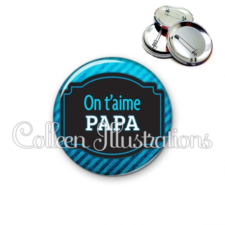 Image imprimée en haute résolution sur papier de qualité, protégée d'un film plastique, et sertie sur une coque et épingle métallique.