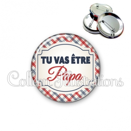 Image imprimée en haute résolution sur papier de qualité, protégée d'un film plastique, et sertie sur une coque et épingle métallique.