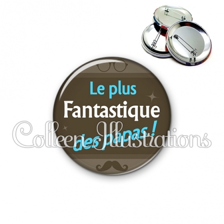 Image imprimée en haute résolution sur papier de qualité, protégée d'un film plastique, et sertie sur une coque et épingle métallique.