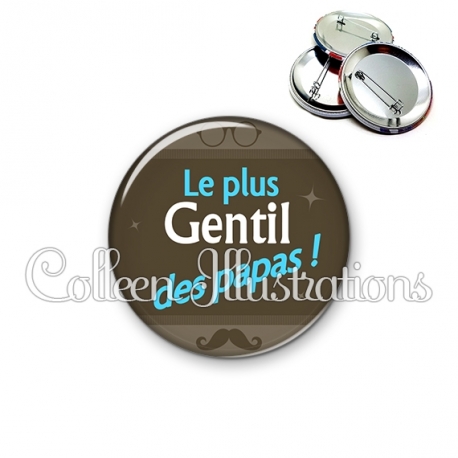 Image imprimée en haute résolution sur papier de qualité, protégée d'un film plastique, et sertie sur une coque et épingle métallique.