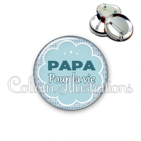 Image imprimée en haute résolution sur papier de qualité, protégée d'un film plastique, et sertie sur une coque et épingle métallique.