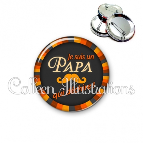 Image imprimée en haute résolution sur papier de qualité, protégée d'un film plastique, et sertie sur une coque et épingle métallique.
