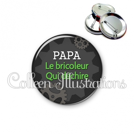 Image imprimée en haute résolution sur papier de qualité, protégée d'un film plastique, et sertie sur une coque et épingle métallique.